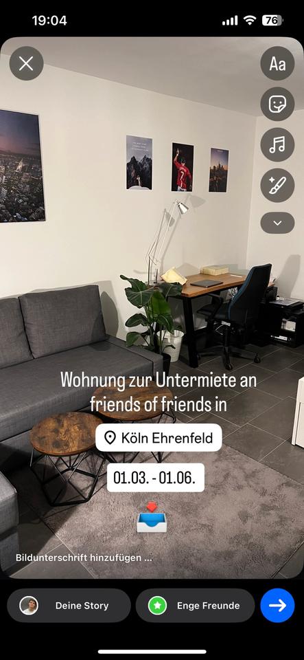 Wohnung in Köln zur Untermiete März bis Juni Ehrenfeld
