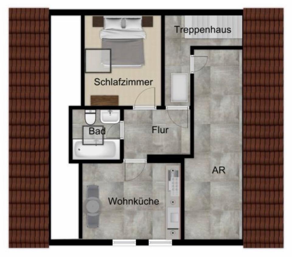 Helle & freundliche 2-Zimmer-Dachgeschoss-Wohnküche (ca. 33 m²) – Woringen